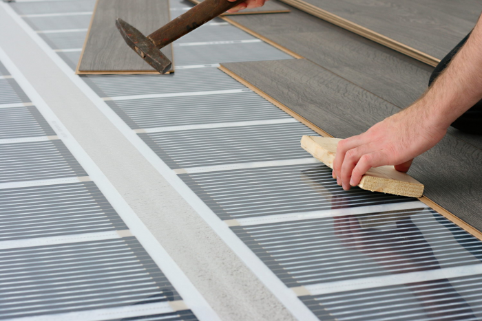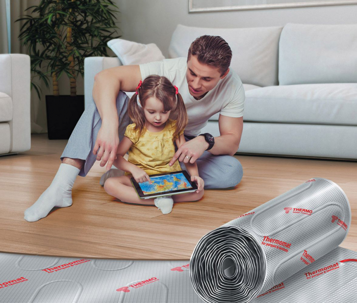 - Пол для ламината, ковролина или линолеума. Если вы решили использовать один из этих напольных материалов, то лучше использовать инфракрасный пол. Для этих материалов пленка из карбона — самое оно. При толщине в 0,3 мм она будет прекрасно нагревать пол. Если сделанный ИК пол вас не устраивает, можете использовать кабельный.