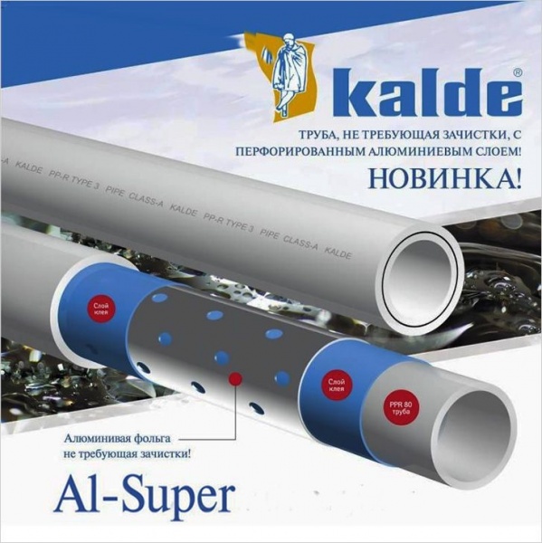 Калде также является старожилом на поприще производства труб из полипропилена. Компания имеет турецкие корни, но выпускает продукцию высокого уровня. В продаже доступны изделия из полипропилена с диаметром от 20 до 110 мм. Стабилизированные изделия из полипропилена выпускаются под названием Fiber. Отличить продукцию можно по характерному белому цвету внешней оболочки. Максимальная температура теплоносителя находится у границы в 95 градусов. Заявленный срок службы продукции составляет 50 лет.